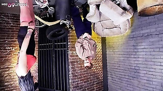 Wife watches as spouse fucks a tied whore in pantyhose