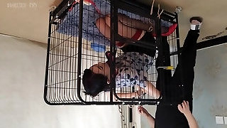 Restrain Bondage girl in cage