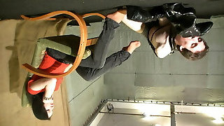 Barefoot BDSM Girl Gagged And Hogtaped By Evil Roomie