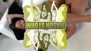 Phat गधा सफेद लड़की कमबख्त मेसन मूर juggles पर एक रॉड खींच के उसे arsehole