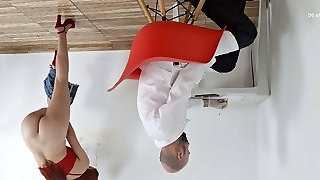 火辣的女孩脱掉她的衣服入学考试,并确保她的地方