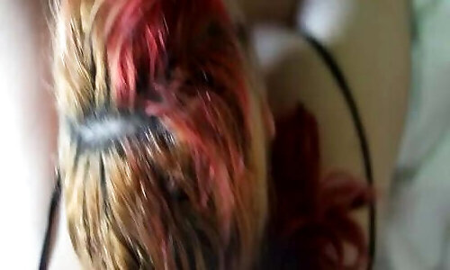 2 finger-banging in platinum-blonde geek streamer
