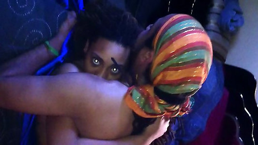 Insane sapphic nubiles slurp and ravage each other in couch