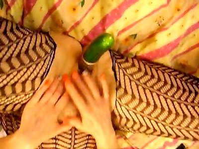 fucking my pussy with the cucumber, it makes me have multiple orgasms