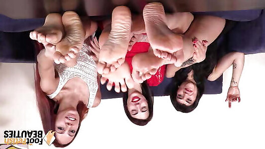 Lesbians spread and wiggle their feet and soles