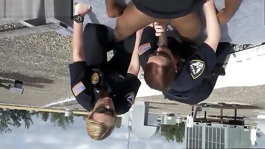Sick crank gets caught blows giant bbc on white femmes by milf cops