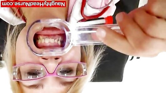 Towheaded head practical nurse masturbates her puss