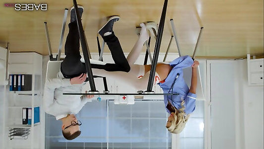 अंडमुख चश्मे के साथ आँसू अपने गर्म सुनहरे बालों वाली नर्स लोला में लाल अंडरवियर