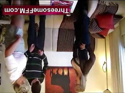 बट, जबड़े और कूच के शानदार युवा काले बालों वाली बोर लड़की का अपमान दो लंड द्वारा